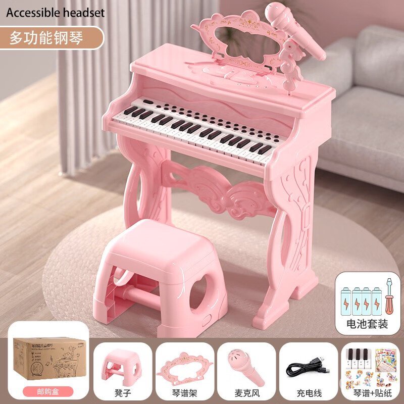 Children's Piano Electronic Keyboard Children's Toys Girls' Multi-Functional Early Education Toys Little Girls 2-3 Years Old Music Microphone 4-5 Children 6-10 Years Old Birthday Gift