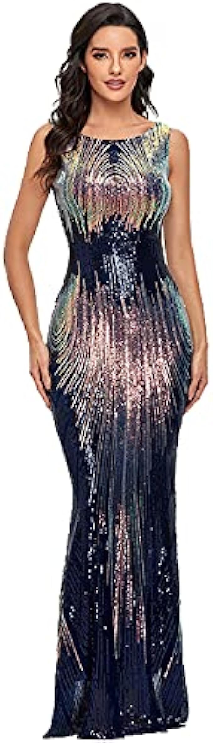LiveZou Women's Double V-Neck Sequined Evening Party Maxi Dress