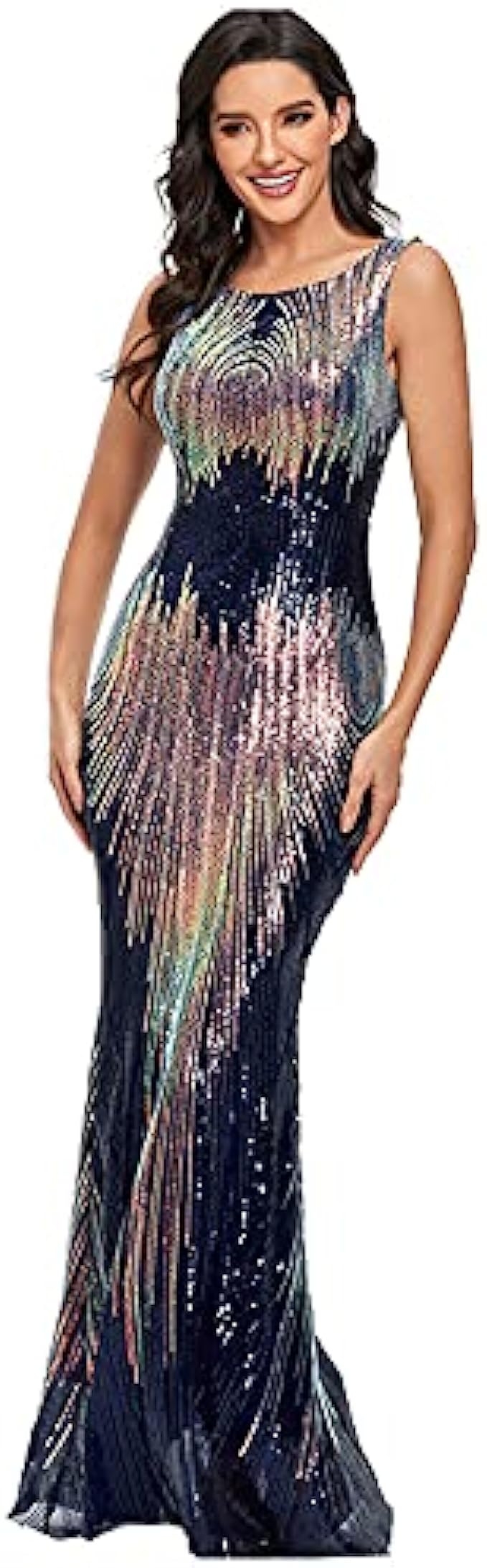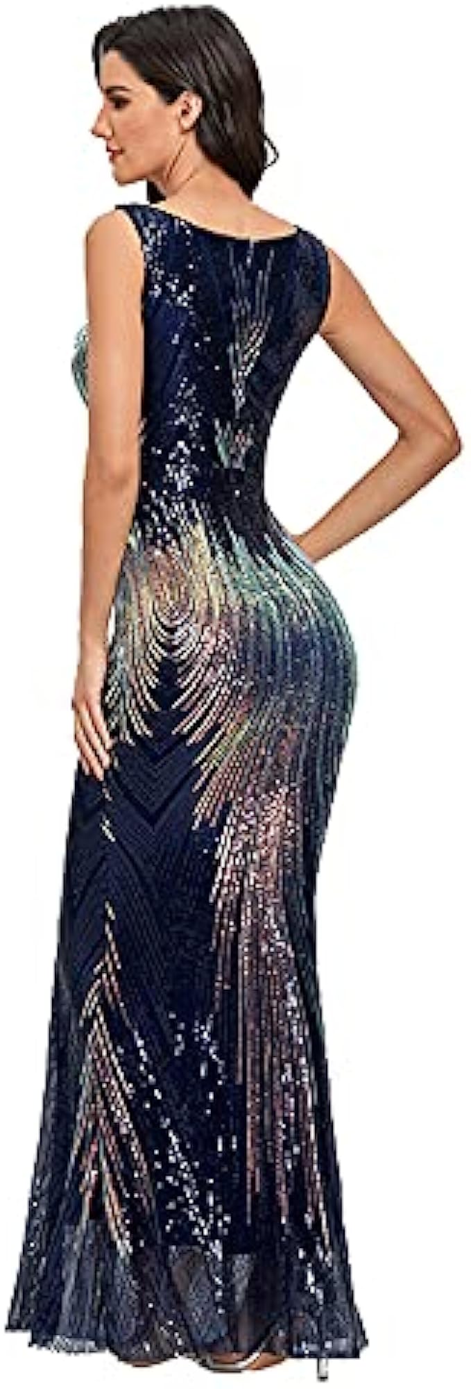 LiveZou Women's Double V-Neck Sequined Evening Party Maxi Dress