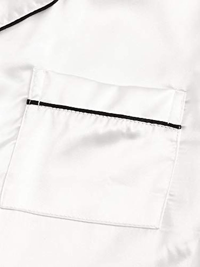 SweatyRocks Women's Short Sleeve Sleepwear Button Down Satin 2 Piece Pajama Set