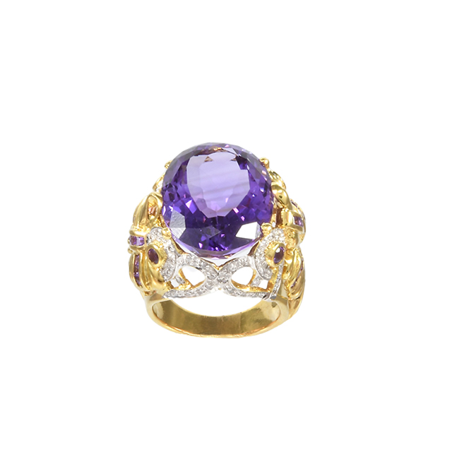 Amethyst High Quality 18 K Gold Blue topaz and Diamonds Lady Ring Luxury Accessories Jewelry