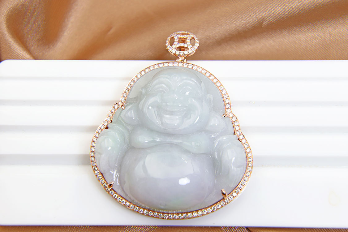Custom Designs Chinese style 18K Real Gold With Lab grown HPHT Diamond bling Jade Pendant for Mans h