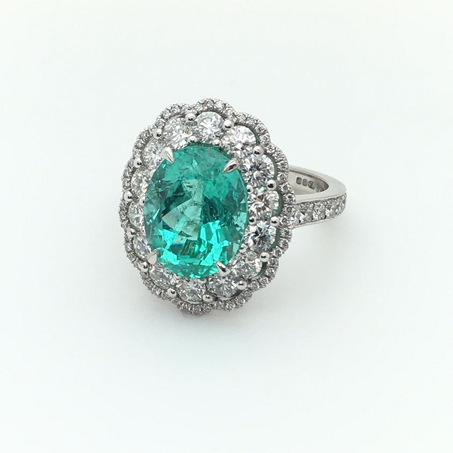 Custom Real Gold Jewelry 3.82 Carat Oval Paraiba Tourmaline And Diamond Daisy Cluster Gold Rings In