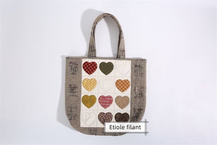 The love shoulder bag sewn with patch, simple style, cheerful color, the bottom of the bag is designed with a wide bottom to increase the storage capacity.