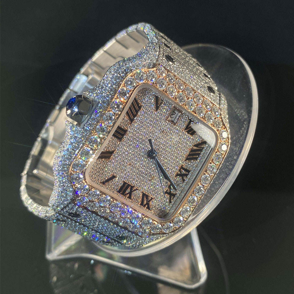 Fully Iced Out Hand Setting Vvs Moissanite Diamond Watch