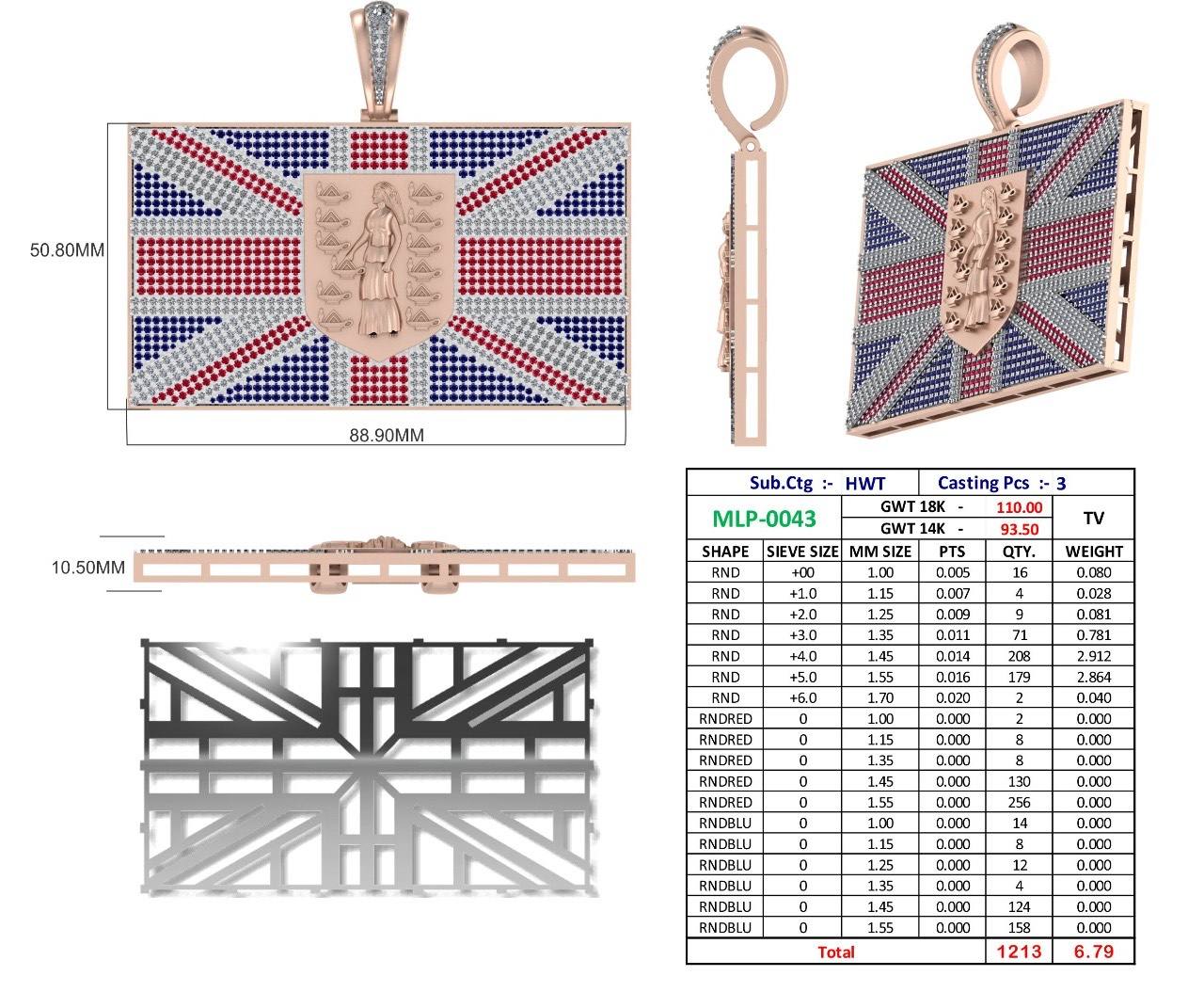 High Quality Icey 10k England Love Flag Color Stones Iced Out Natural Diamond Pendant Unisex Jewelry