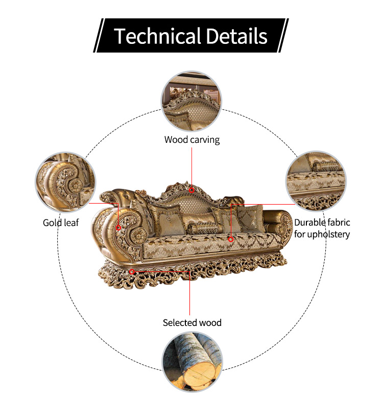 Home Lounge Large High Quality Royal Solid Wood Velvet 3 Seater Italian Style Baroque Gold Luxurious