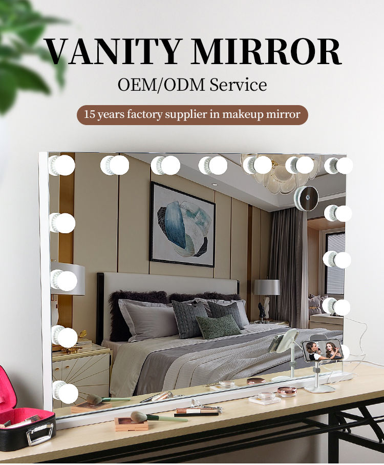 LED Custom Wholesale Portable Desktop Cosmetic Smart Table Makeup Mirror with 15 PCS bulbs mirror