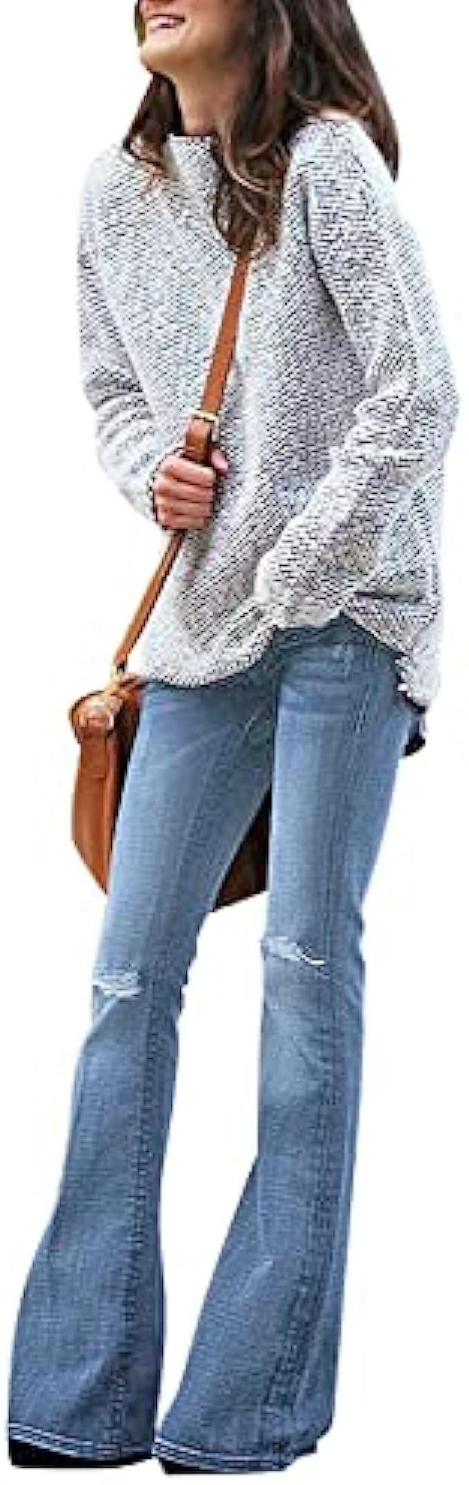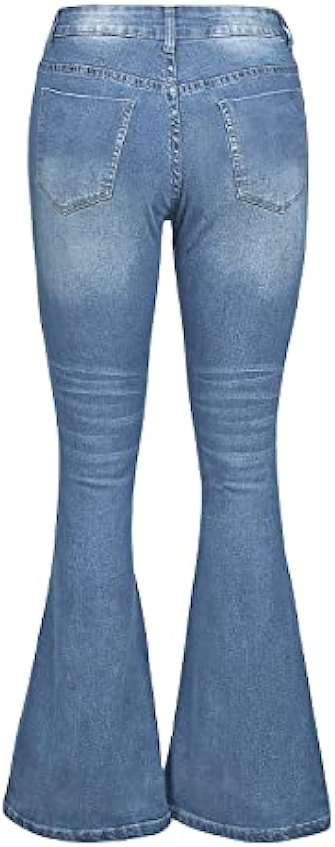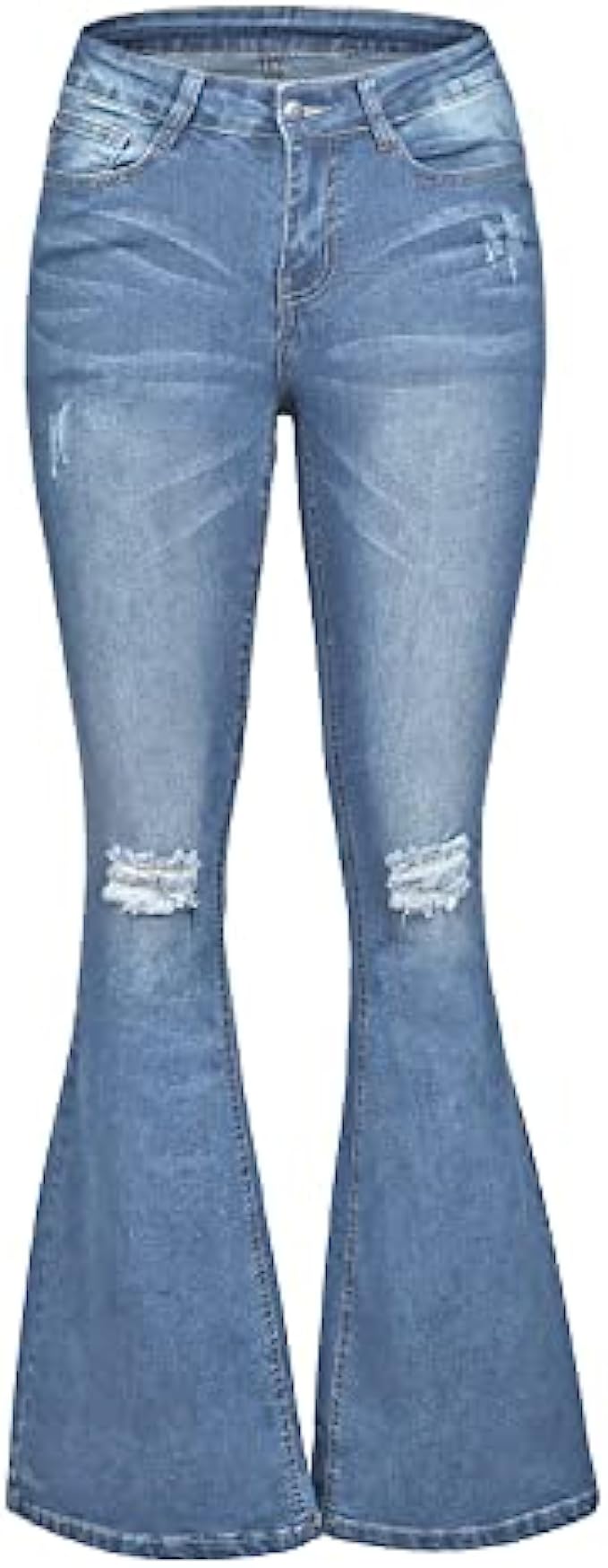 luvamia Women's Ripped Flare Bell Bottom Jeans Pants Retro Wide Leg Denim Pants