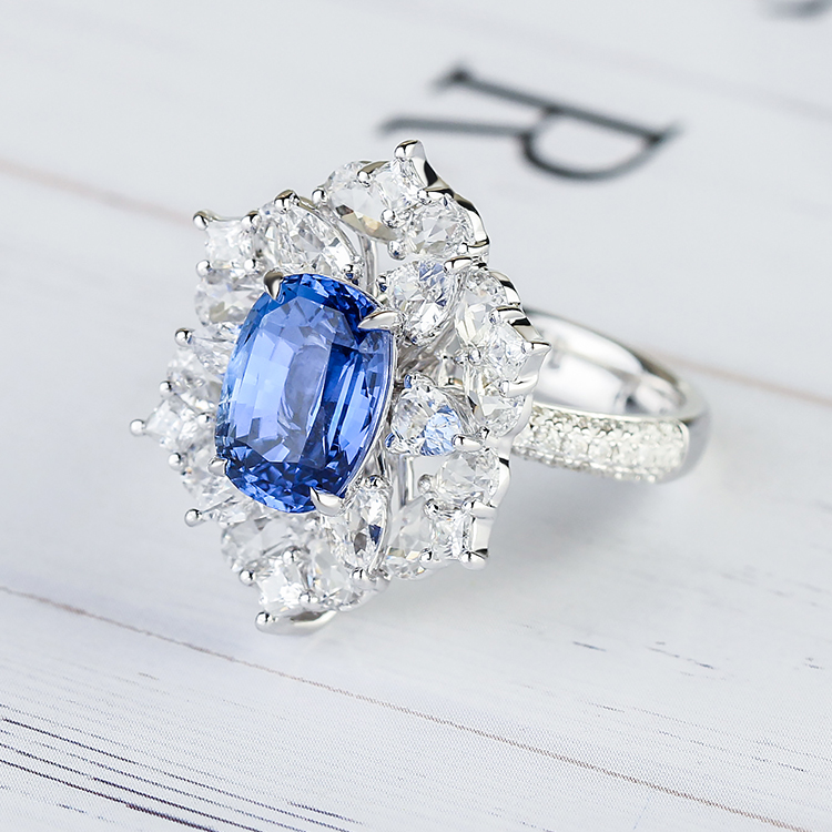 Luxurious Cultivated Sapphire Rings 14K Solid Gold Diamond Eternity Rings Jewelry Women