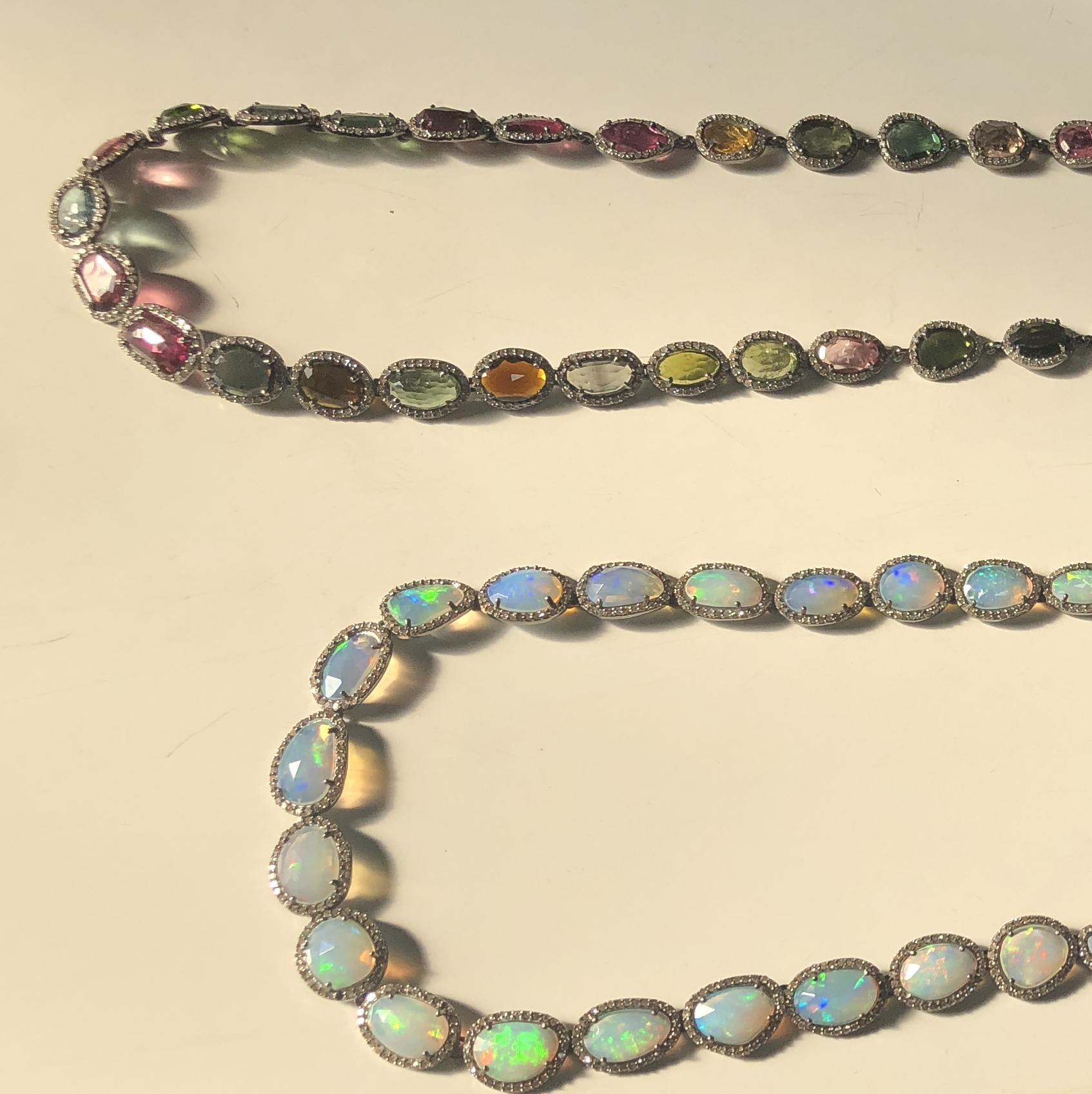 Natural Real Pave Diamond Multi Tourmaline Ethiopian Opal Stone Necklace