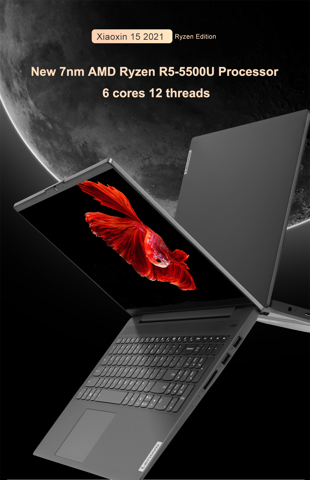 Original Lenovo Xiaoxin Air15 Laptop 15.6 Inch Ryzen R5 5500U CPU 16G DDR4 512G