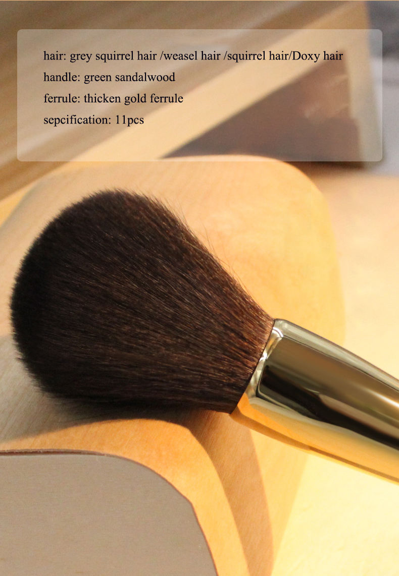 OUMO- 11pcs luxury grey squirrel hair green sandalwood handle makeup brush set with private label n