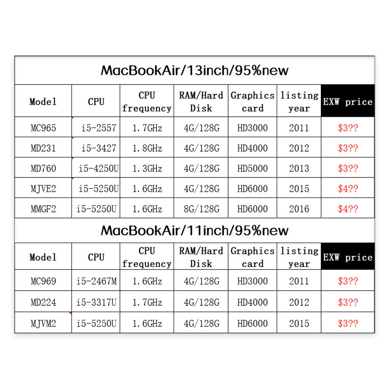More information please contact us. (We also have others brand, HP, DELL, Lenovo, Toshiba, Fujitsu, NEC.macbook Please contact us for