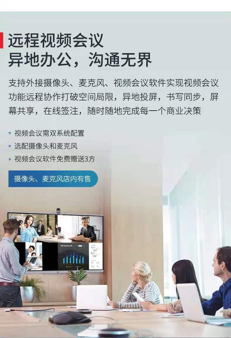 Supports external cameras, microphones, and video conferencing software to realize video conferencing functions. Collaborate remotely to break the limitations of space. Screen remotely, handwriting synchronization. Screen sharing, online annotation, complete every business decision anytime, anywhere.