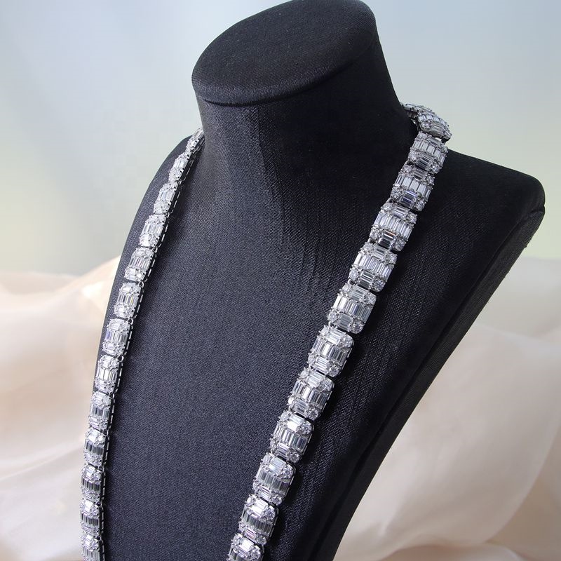 Sterling Silver925 Hip Hop Jewelry 9.5mm Width Full Setting Iced Out Baguette Moissanite Cuban Neckl