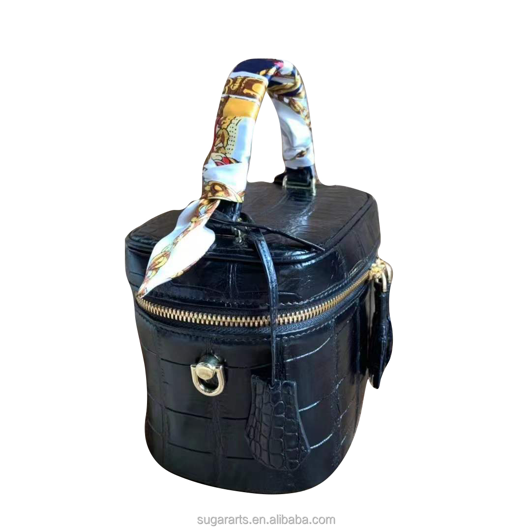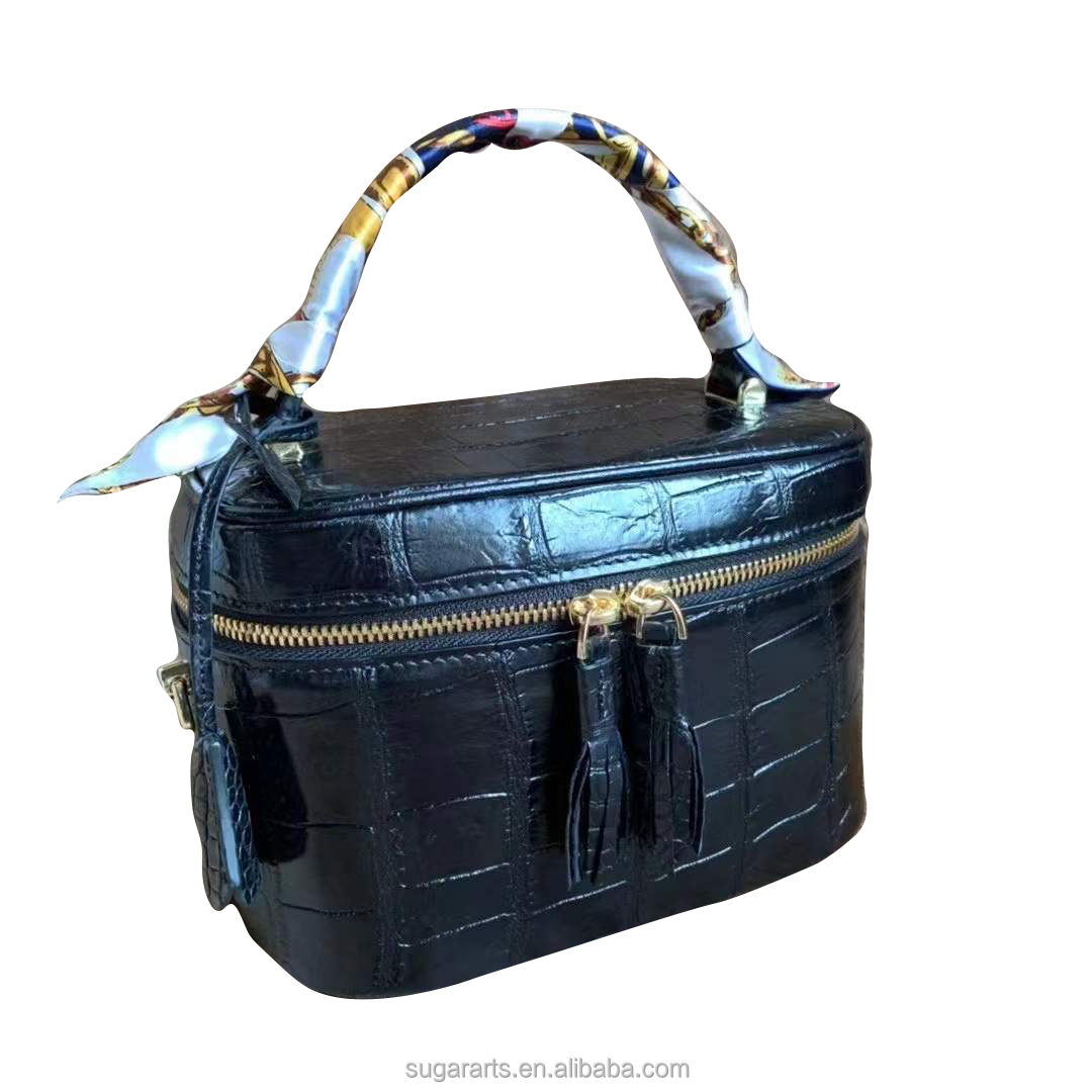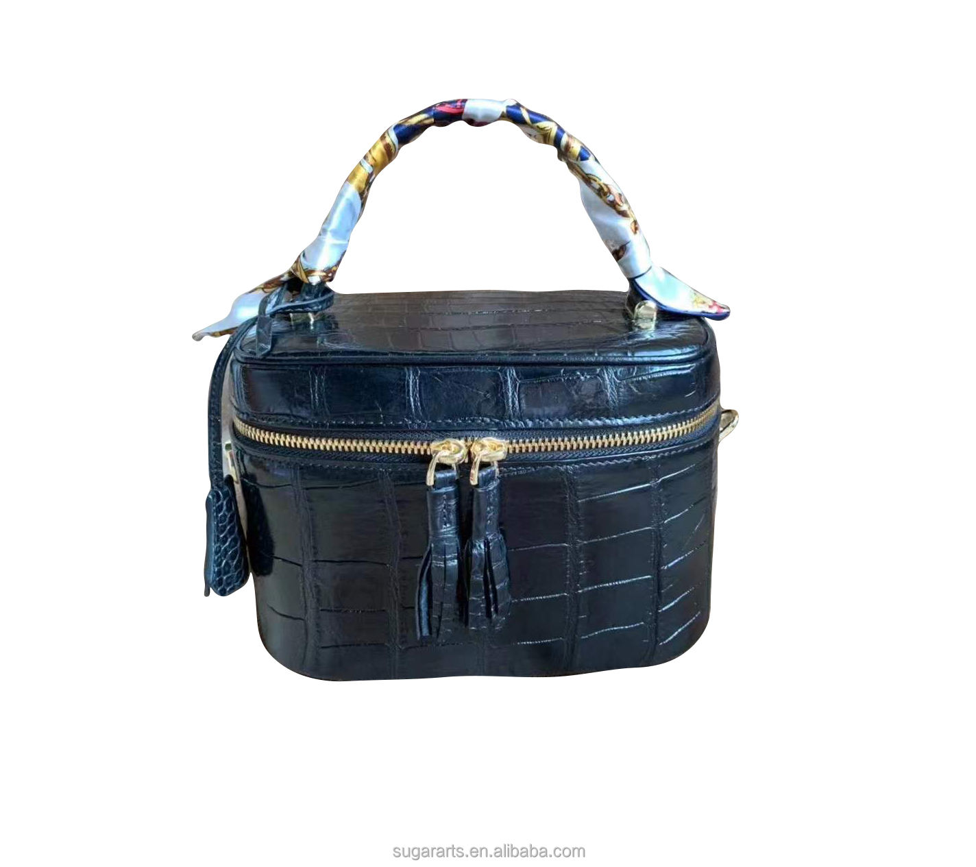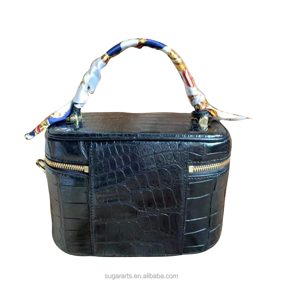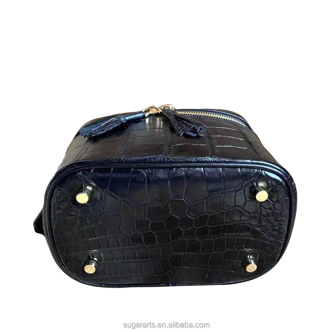 The black Cosmetic bag for women Cowhide inner material Nile alligator embossed leather handbag