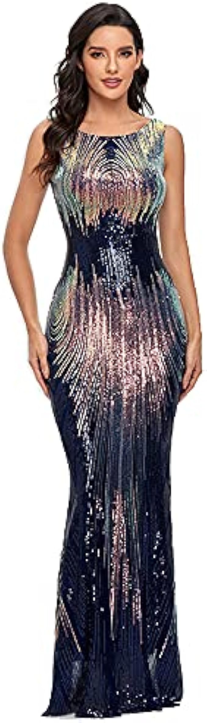 LiveZou Women's Double V-Neck Sequined Evening Party Maxi Dress