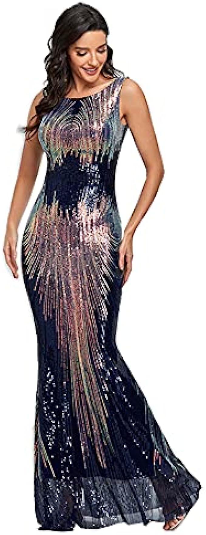 LiveZou Women's Double V-Neck Sequined Evening Party Maxi Dress