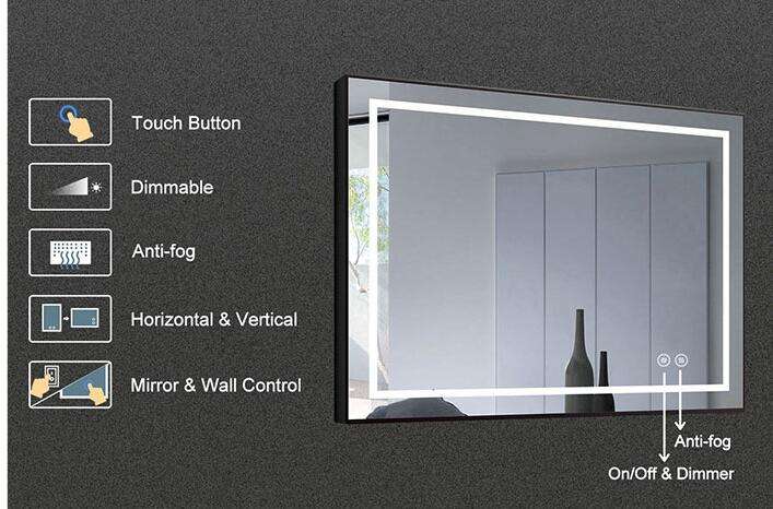 LED Bathroom Mirror with Touch Button, Anti Fog, Dimmable, Vertical & Horizontal Mount