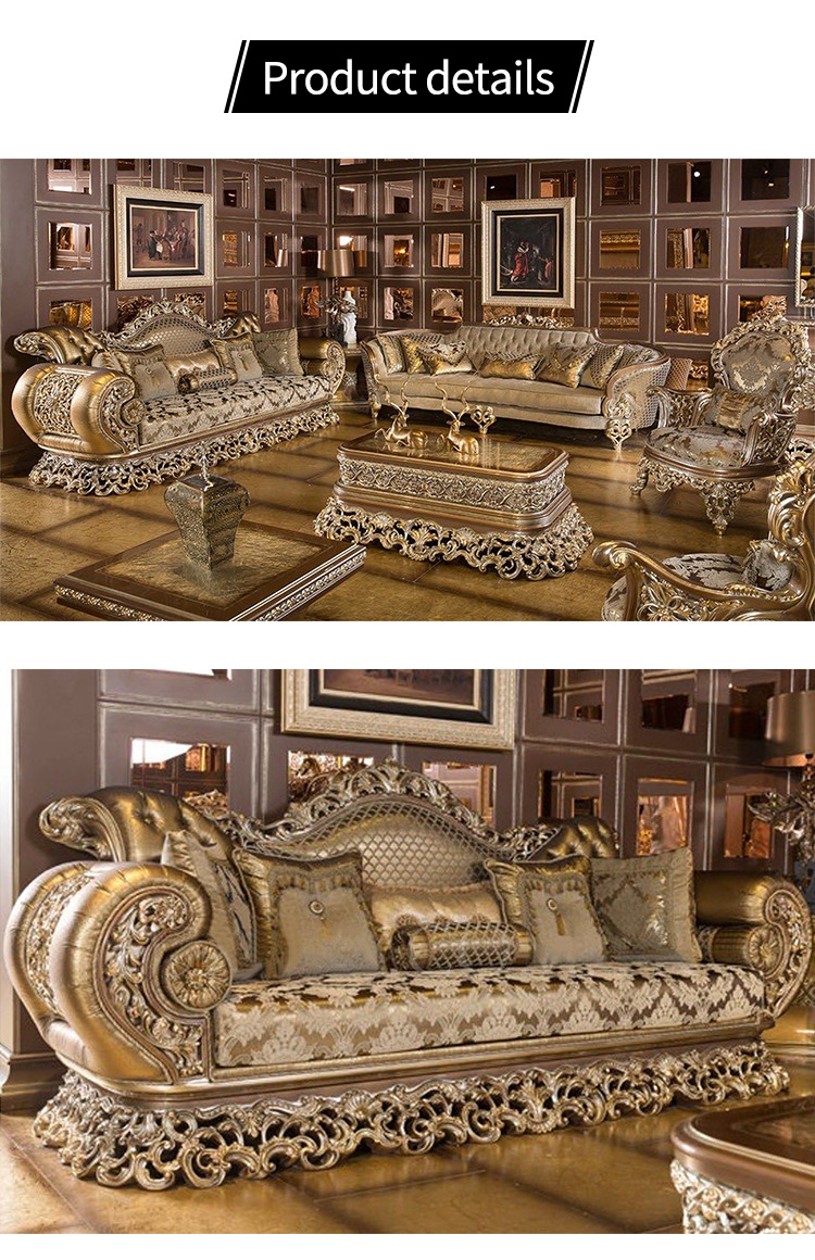 Home Lounge Large High Quality Royal Solid Wood Velvet 3 Seater Italian Style Baroque Gold Luxurious