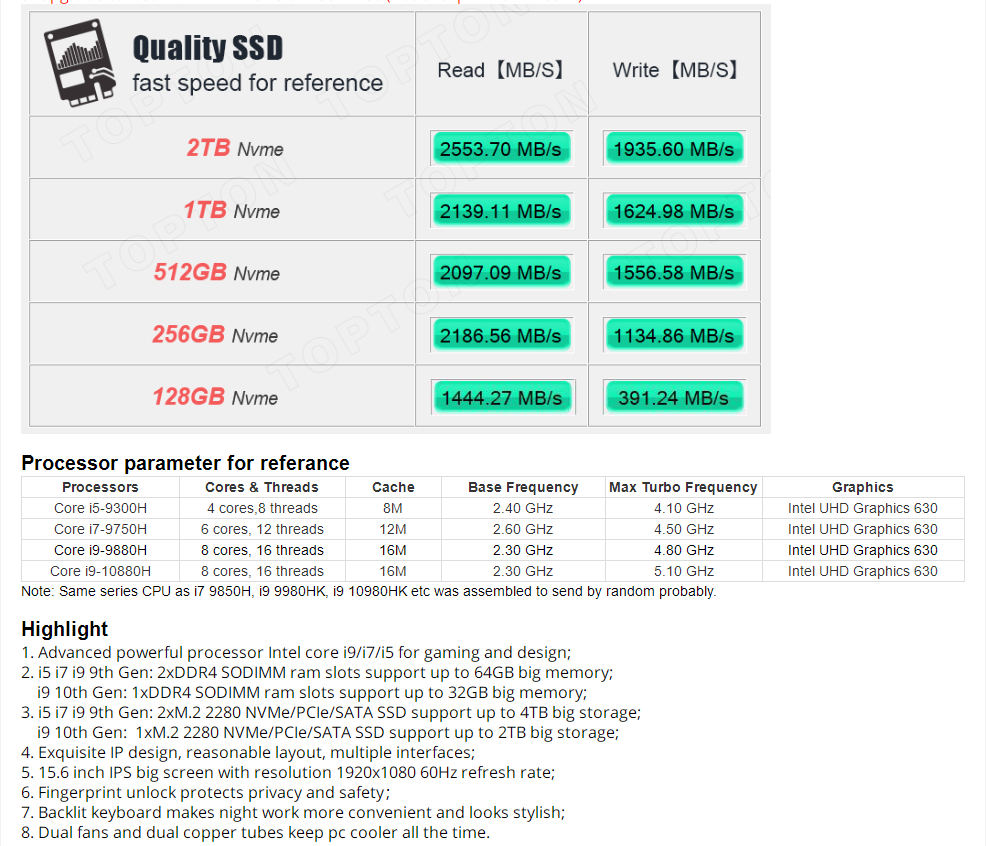 Hot Gaming Laptop i9 10880H i7-9750H 15.6' 1920x1080 HD computer 64GB DDR4 4TB SSD Win10 Notebook Fi