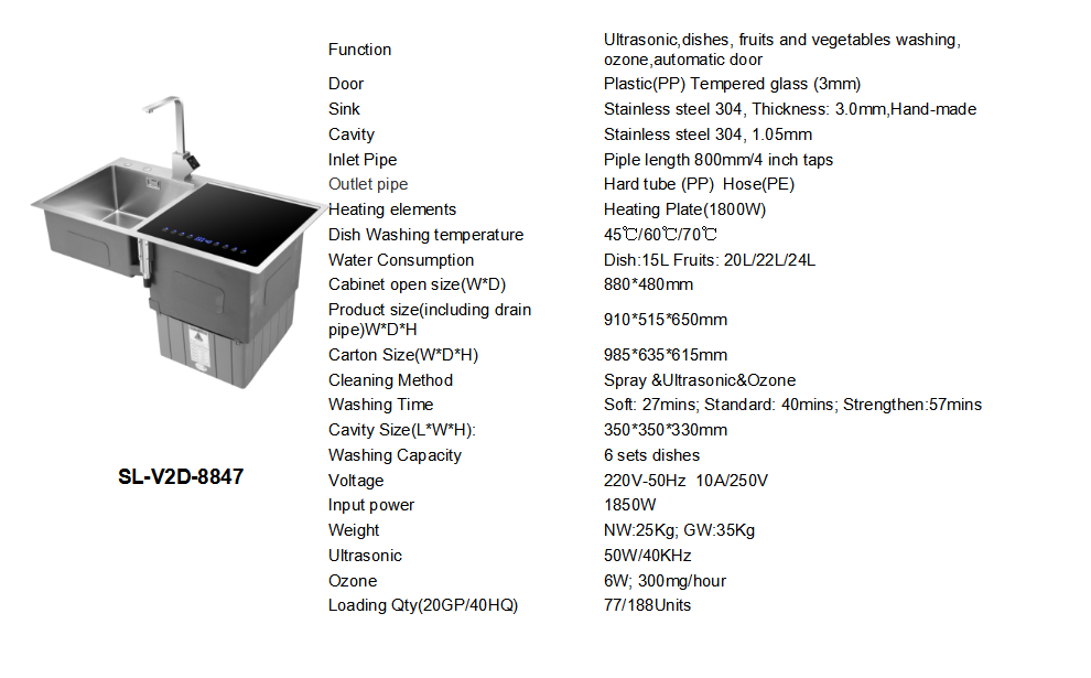 Ultrasonic,dishes, fruits and vegetables washing, Ozone