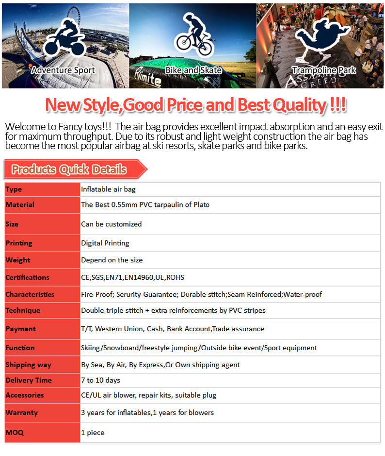 land cruiser suspension airbag/inflatable landing air bag/FMX air bag sport