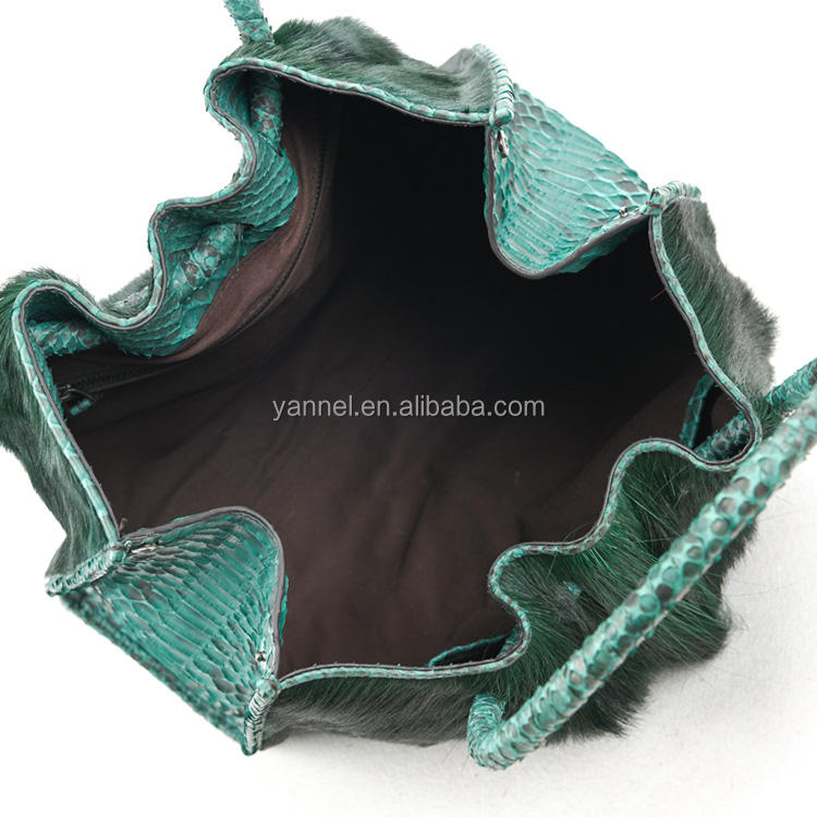 Luxury antelope fur handbags women elegant python tote bags Dark Green lady purse luxury fashion e
