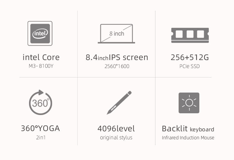 -Dual Band 2.4GHz / 5.0GHz WiFi : 802.11a/b/g/n/ac wireless Internet, allows you to connect to the Web while within range of an available wireless network -Match:4096 stylus -Detachable game controllers:now you can deal with games and jobs in one device -CPU: intel core M3-8100Y :8GB/256GB PCIe SSD,more faster more powerful -The Ring tail lights desgin and RGB backlit keyboard all in "one" now,aesthetics of technology -Intelligent cooling system, dual fans module design -Full function Type C port and more ports reserve,think more for you -support 5V/9V/12V/15V powerbank to charge