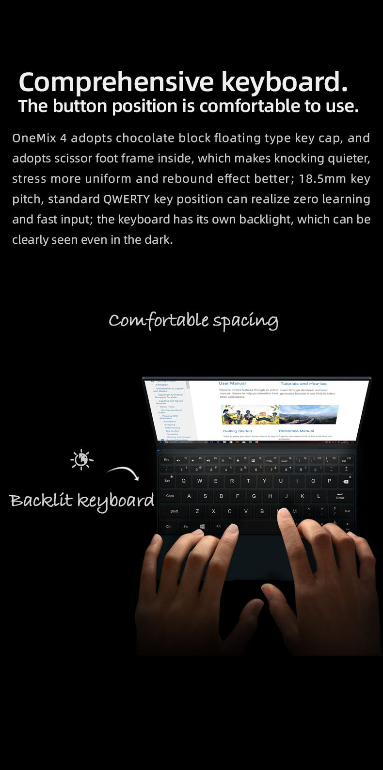 One Mix 4 Platumiumn 10.1inch Intel Core I7-1160G7 16GB+512GB IPS 2560*1600 Fingerprint Backlit Key