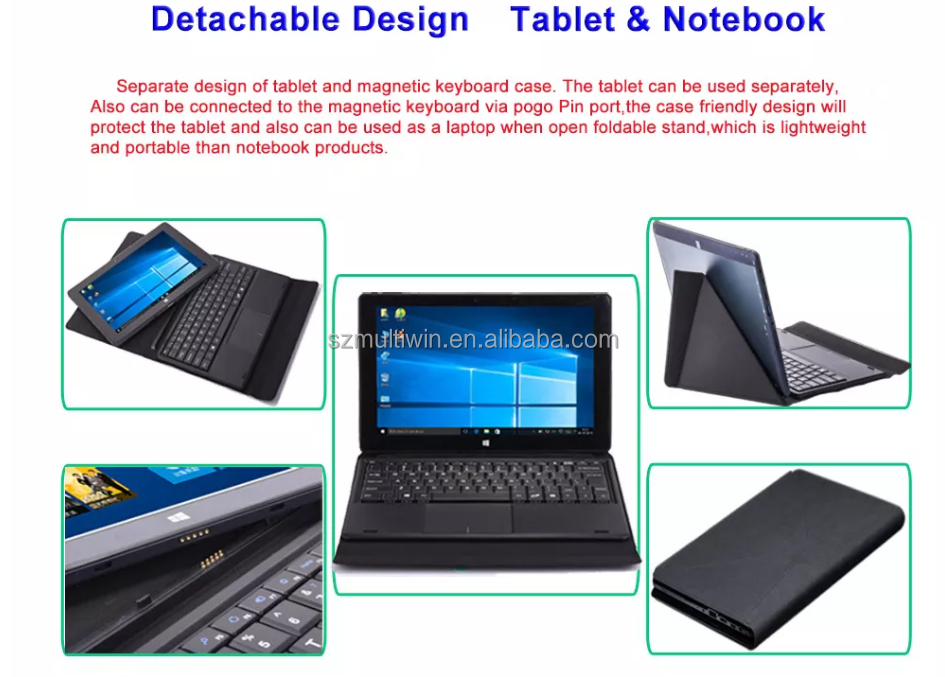 Original 10.1inch Touch Screen 2in1 laptops with detachable magnetic POGO PIN keyboard windows 10 ho
