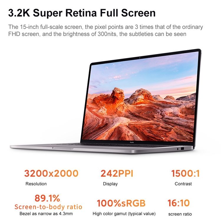 5. 15.6 inch 3.2K Super Retina screen, 3200x2000 resolution